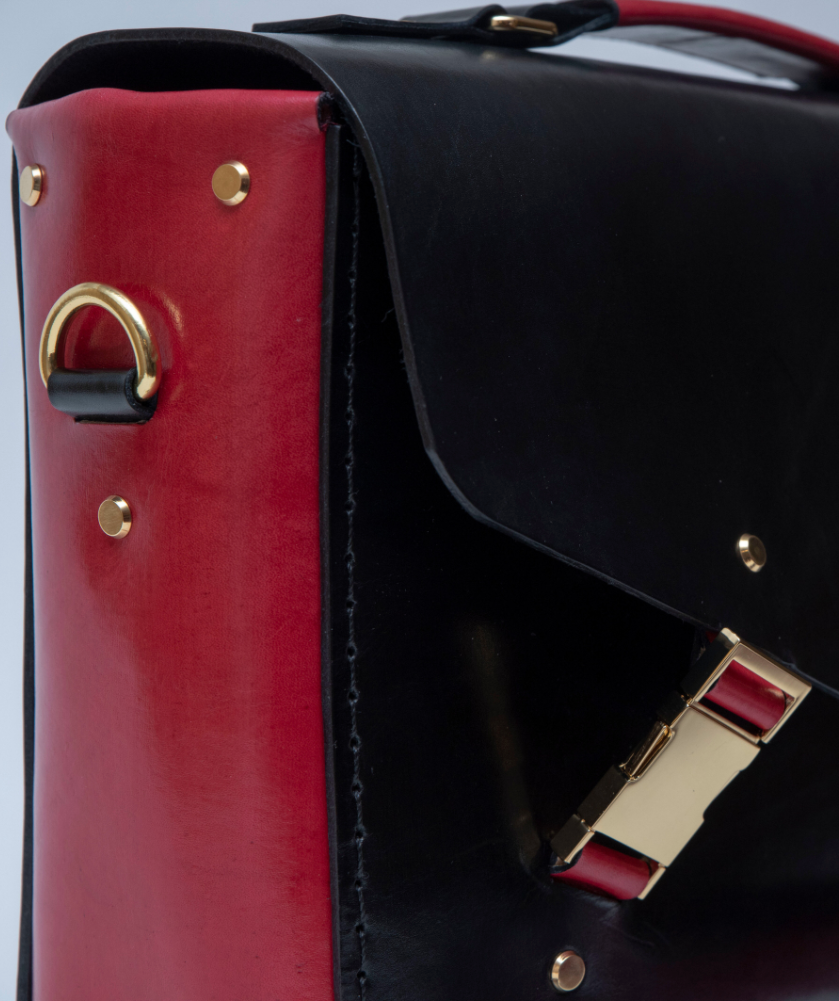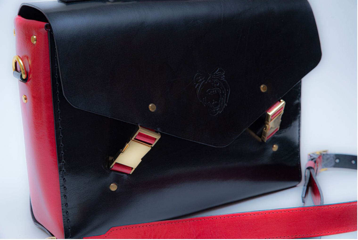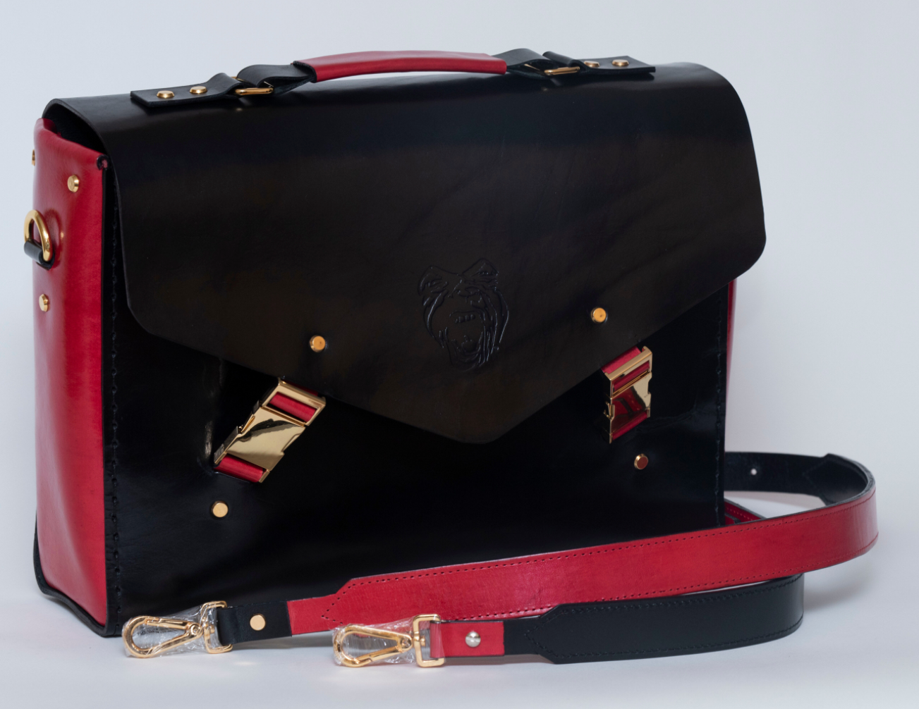 The Princeton Messenger delivers sharp lines and high-contrast color blocking in black and red leather. Gold hardware and dual front clasps bring clean function, while the embossed Rage face emblem locks in identity. Designed for everyday movement, this piece keeps your look tight and your essentials secure.